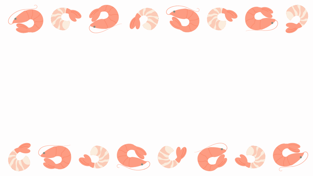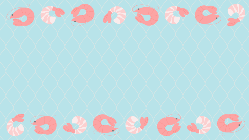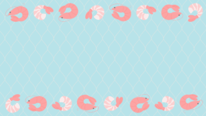 プリプリとした茹であがったえびの殻付きと剥きえびと背景には網目模様のえび好きをイメージした背景素材です。「オレンジ色のえびと四角の網模様で黄色の明るくかわいい背景素材」と「ピンク色のえびと網目模様の水色の爽やかな背景素材」と「えびの背景なし」の3種類のえびの素材をイメージしました。画像サイズは 1920px × 1080pxのpngデータです。広告やwebの素材、動画の素材やタイトルの周りのあしらいなどご自由にお使いください。