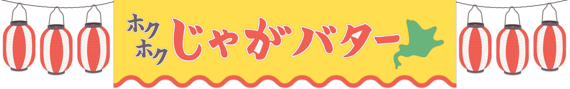 お祭りの赤い提灯と黄色の垂れ幕、蒸し立てのほくほくのじゃがバターの屋台の飾り枠イラストです。 チラシ、広告やwebの素材、動画の素材やタイトルの周りのあしらいなどご自由にお使いください。