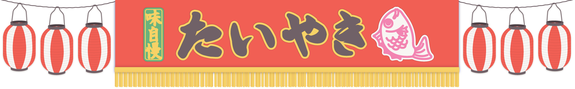 赤い提灯とたい焼き屋さんの赤い垂れ幕と天板で焼かれてお祭りで見かける屋台のたい焼きの飾り枠イラストです。 チラシ、広告やwebの素材、動画の素材やタイトルの周りのあしらいなどご自由にお使いください。