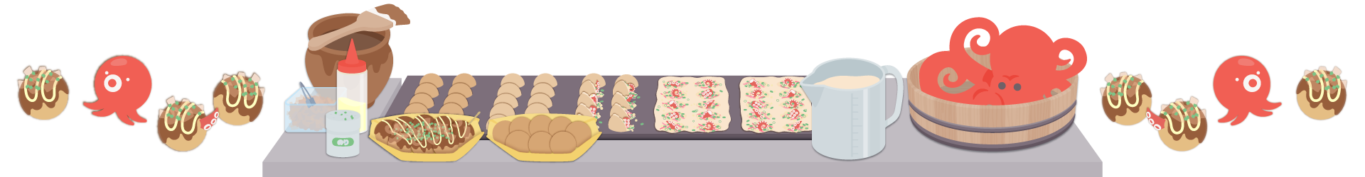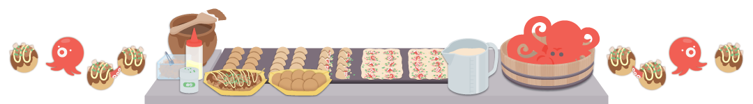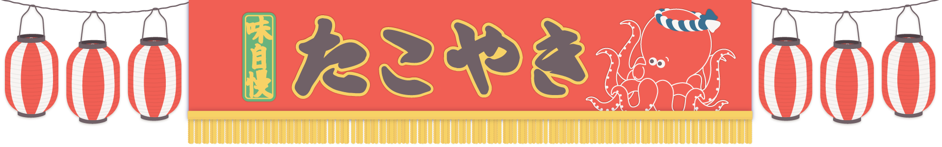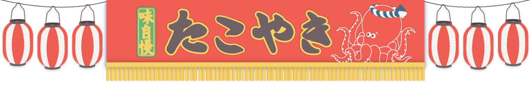 お祭りの赤い提灯と真っ赤なレトロな垂れ幕、鉄板で焼かれているたこ焼きの屋台の飾り枠イラストです。 チラシ、広告やwebの素材、動画の素材やタイトルの周りのあしらいなどご自由にお使いください。