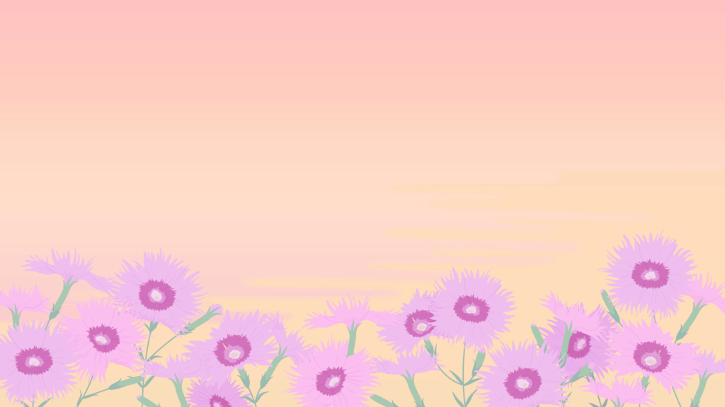 ピンク色の花びらがひらひらしてかわいいなでしこ、日本の秋の花の背景素材です。「薄いピンク色の優しい色合いのなでしこの花と霧ががった昼のそら」と「濃いめのピンク色のかわいいなでしこの花とサーモンピンクの夕焼けのそら」と「背景画像が透過したなでしこの花」の3種類のなでしこをイメージしました。