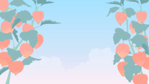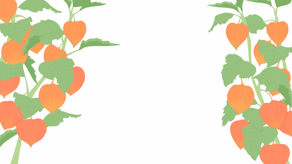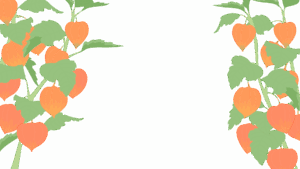 オレンジ色に実った提灯のようなほおずき、秋の植物の背景素材です。「ピンク色のかわいいほおずきとくもが広がった薄いそら」と「オレンジ色の綺麗なほおずきと日が沈んでいく夕方のオレンジ色のせつないそら」と「背景画像が透過したオレンジ色のほおずき」の3種類のほおずきをイメージしました。
