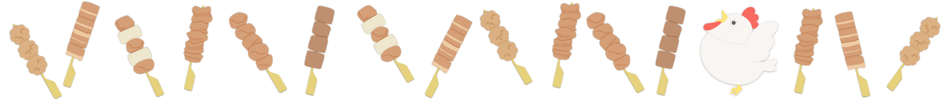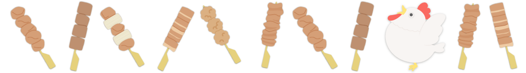 ニワトリとつくね、とりもも、ねぎま、鶏皮などいろんな種類の焼き鳥の飾り枠イラストです。 チラシ、広告やwebの素材、動画の素材やタイトルの周りのあしらいなどご自由にお使いください。