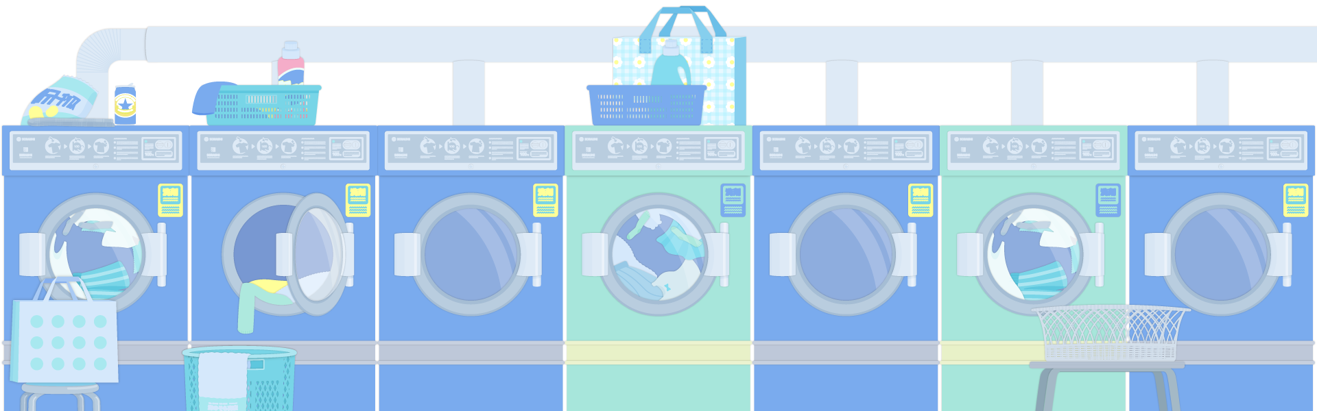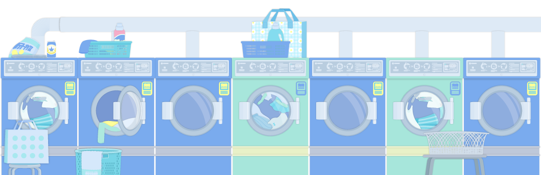 レトロなコインランドリーの飾り枠イラストです。 チラシ、広告やwebの素材、動画の素材やタイトルの周りのあしらいなどご自由にお使いください。