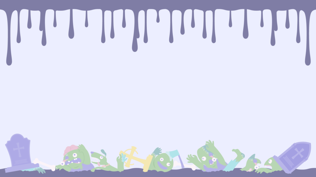 墓地の土から這い出てくる継ぎはぎだらけの人型と犬猫のゾンビとブラッドがたれ流れている背景でハロウィンをイメージした素材です。「緑色のゾンビ達と濃い紫色のブラッドのパステルカラーのかわいい背景素材」と「水色のポップなゾンビとピンク色ブラッドのビビットな背景素材」と「ゾンビの背景なし」の3種類のゾンビの素材をイメージしました。画像サイズは 1920px × 1080pxのpngデータです。広告やwebの素材、動画の素材やタイトルの周りのあしらいなどご自由にお使いください。