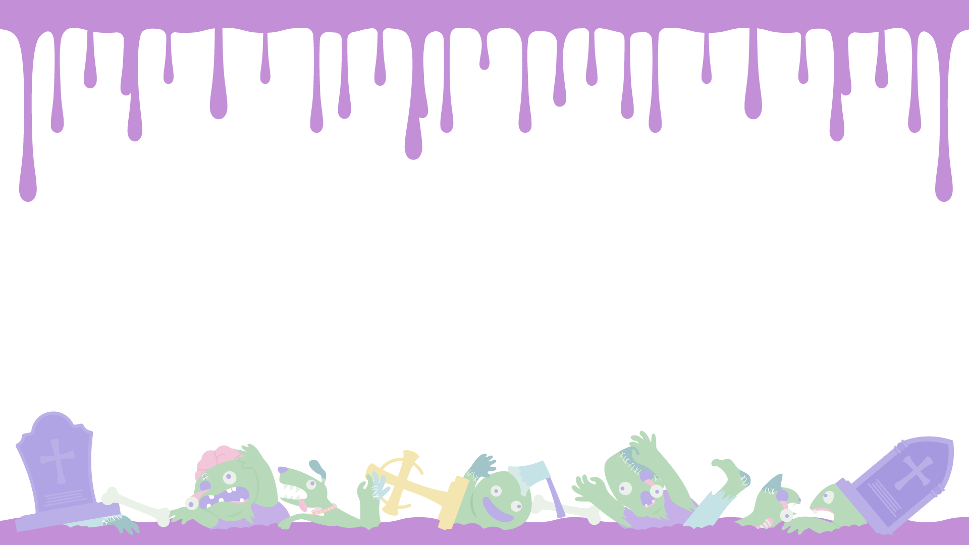 墓地の土から這い出てくる継ぎはぎだらけの人型と犬猫のゾンビとブラッドがたれ流れている背景でハロウィンをイメージした素材です。「緑色のゾンビ達と濃い紫色のブラッドのパステルカラーのかわいい背景素材」と「水色のポップなゾンビとピンク色ブラッドのビビットな背景素材」と「ゾンビの背景なし」の3種類のゾンビの素材をイメージしました。画像サイズは 1920px × 1080pxのpngデータです。広告やwebの素材、動画の素材やタイトルの周りのあしらいなどご自由にお使いください。