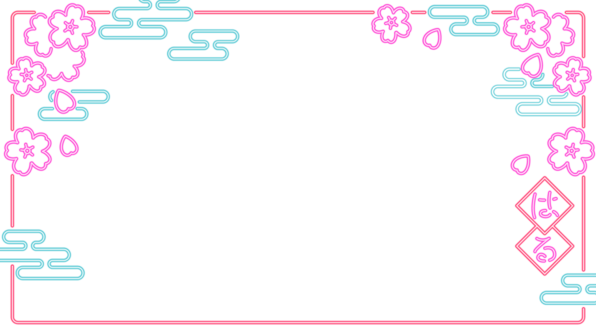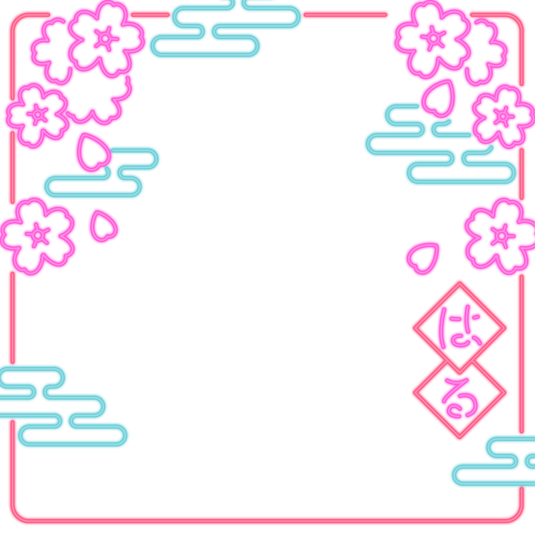 ネオンの春をイメージした飾り枠イラストです。 チラシ、広告やwebの素材、動画の素材やタイトルの周りのあしらいなどご自由にお使いください。