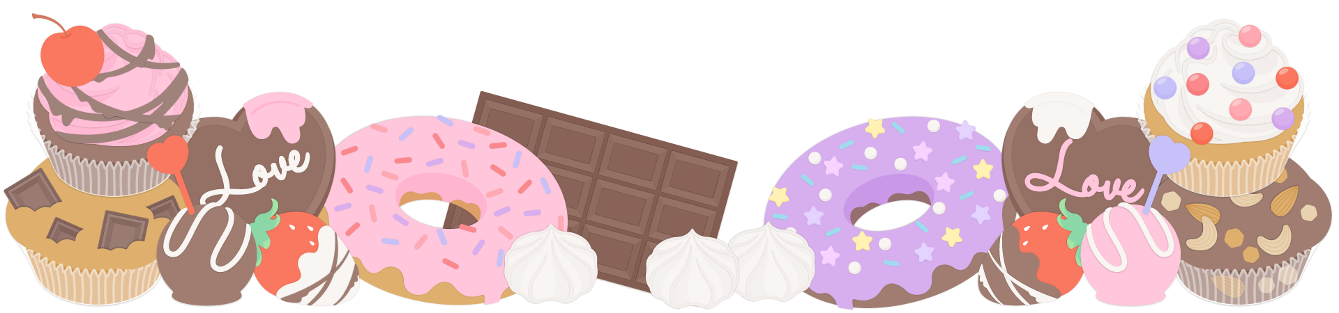 チョコマフィン、ドーナツ、トリフ、いちご、板チョコなどチョコレートを使ったお菓子の飾り枠イラストです。 チラシ、広告やwebの素材、動画の素材やタイトルの周りのあしらいなどご自由にお使いください。