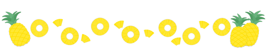 カットや、輪切りにしたパイナップルの飾り枠イラストです。 チラシ、広告やwebの素材、動画の素材やタイトルの周りのあしらいなどご自由にお使いください。