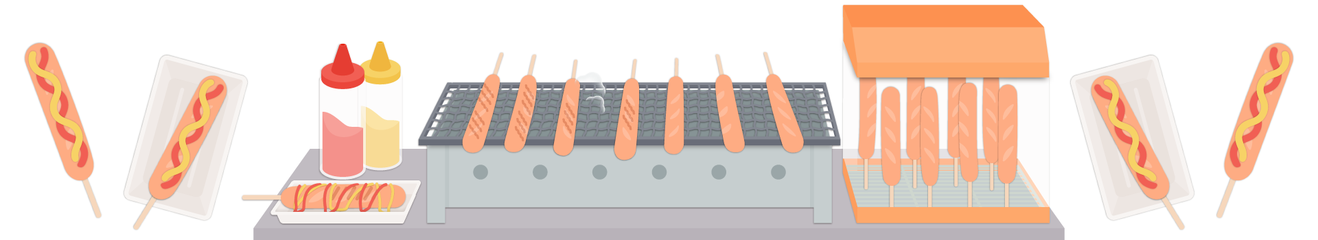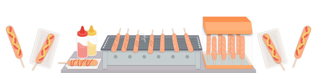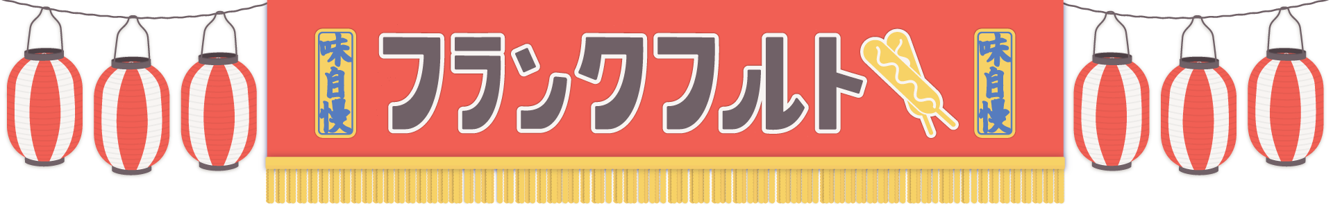お祭りの赤い提灯と赤いレトロな垂れ幕、炭火で焼かれている昔ながらの屋台のフランクフルトの飾り枠イラストです。 チラシ、広告やwebの素材、動画の素材やタイトルの周りのあしらいなどご自由にお使いください。