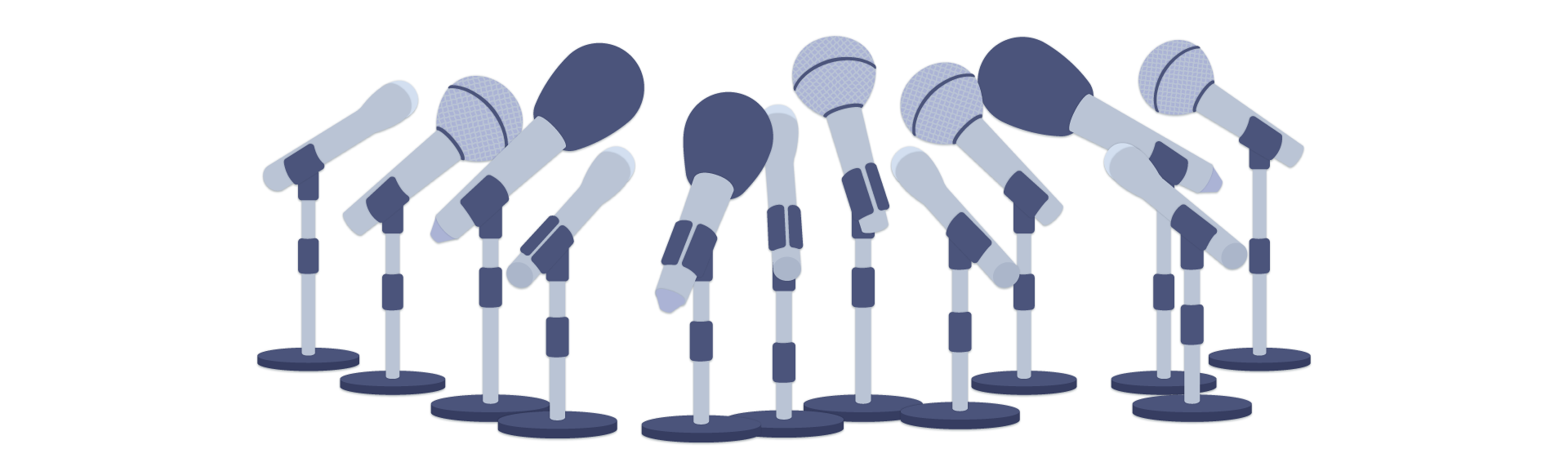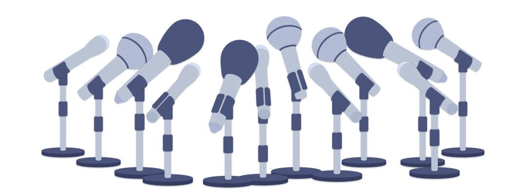 囲み取材を受けている気分になれるマイクの飾り枠イラストです。 チラシ、広告やwebの素材、動画の素材やタイトルの周りのあしらいなどご自由にお使いください。