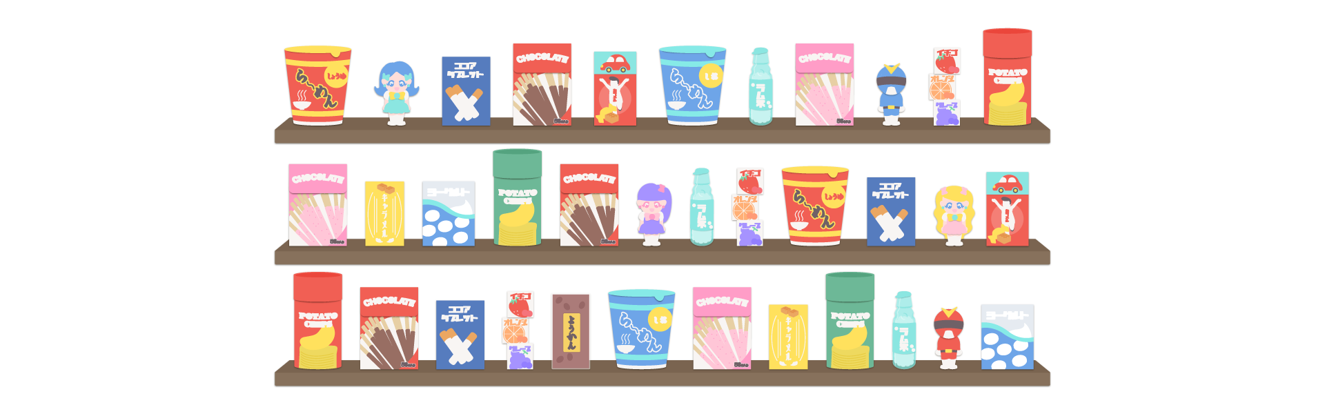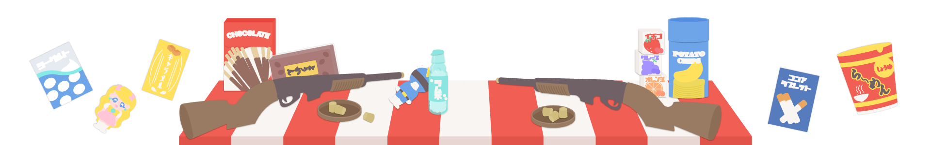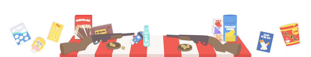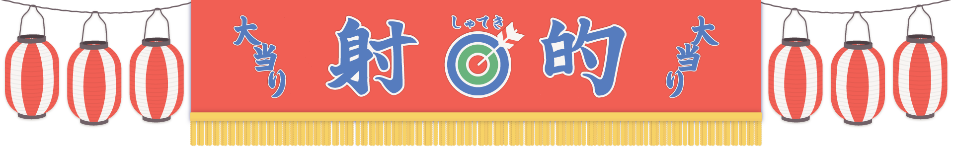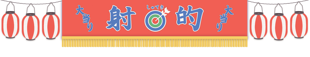 お祭りの赤い提灯と真っ赤な垂れ幕、お菓子や人形、カップラーメンなど景品に並べられたレトロな射的の屋台の飾り枠イラストです。 チラシ、広告やwebの素材、動画の素材やタイトルの周りのあしらいなどご自由にお使いください。