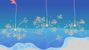 夜の静かなうみの砂浜で最後の夏の線香花火を楽しんでいる背景素材です。「夏の最後の少し切なくなるオレンジの線香花火」と「パチパチした光がかわいいピンクの線香花火」と「花火の最後にする日本の夏の風物詩の黄色い線香花火」の3種類の線香花火をイメージしました。